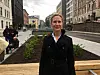 Julie Sjøwall Oftedal, arkitekt i A-lab, foran den tidligere nedkjøringsrampen. Foto: Live Drønen
