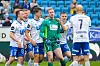 Lagkameratene flokker seg rundt Haugesunds målvakt Egil Selvik etter at han reddet straffe.Foto: Jan Kåre Ness / NTB