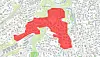 Husstander innenfor det rødmerkede området ble rammet av den nylig opphevede kokeanbefalingen.Kart: Vann- og avløpsetaten