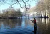 Isen er i ferd med å legge seg i bukta, men Svein Rødbergshagen vader ut i Akerselva for å trene på fluekasting. Det gjør han nesten hver dag, vinteren gjennom, så sant ikke kuldegradene blir for mangeFoto: Anders Høilund