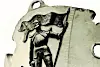 Baugen til Osloskipet Bayard fra Fred. Olsen & Co. Gallionsfiguren fremstilte den franske ridder Bayard, som holdt et banner med innskripsjonen “Sans Peur et Sans Reproche”; ridderen uten frykt og daddel. Motorskipet Bayard ble bygget ved Akers mek. verksted i 1936 og baugdekorasjon ble laget av kunstneren Emil Lie. Foto: Ukjent. Norsk Maritimt Museum/ Lorentzen-samlingen.