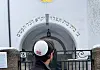 En mann iført det jødiske hodeplagget kipa utenfor synagogen i Bergstien på St. Hanshaugen ved en tidligere anledning.