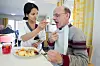 Antallet private sykehjem går ned i Oslo. Her får en pasient servert middagen av en helsefagarbeider. Illustrasjonsbilde: Heiko Junge / Scanpix