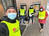 Streikene helsearbeidere fra Fagforbundet informerer om streik utenfor Kantarellen bo- og rehabiliteringssenter.Foto: Fagforbundet pleie og omsorg Oslo
