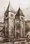 En rekonstruksjon av Mariakirken i Oslo gjort av Harald Sund (1876–1940). Foto: Wikipedia