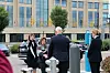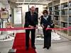 President ved St. Olaf College i Minnesota, David Anderson, og Dronning Sonja markerer åpningen av det nye historiske arkivet.Foto: Simen Sund, Det kongelige hoff