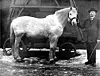 Nesten hvite Krølle med den spesielle pelsen var sporveiens mest populære hest. Da sporvognen ble elektrisk så folk på det som et stort framskritt, men de savnet Krølle. Her står han sammen med driftsbestyrer Poppe.Foto fra Oslo museum, ukjent fotograf https://creativecommons.org/licenses/by-sa/3.0/no/