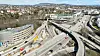 Dronebilde av Fornebukrysset. Arbeidet vil foregå i området mellom Granfosstunnelen (i midten av bildet), og på E18. All trafikk vil flyttes over i det østgående løpet.Foto: Marius Larrarte Jacobsen / Statens vegvesen
