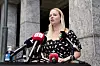 Stor interesse rund hva Rødts gruppeleder i bystyret, Eivor Evenrud, hadde å komme med under pressekonferansen i Rådhusets Borggård.Foto: Stian Lysberg Solum / NTB