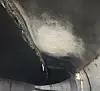Taket i tunnelen er tydelig preget av brannen.