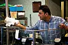 En ung pakistansk mann med caps på hodet gjør et innøvd håndtrykk med mannen bak disken. De slår om til urdu, og mannen bak disken pakker rutinert de klissete småkakene i to grønne bokser, mens den unge mannen med caps peker på nesten alt som står utstilt bak glasset.
