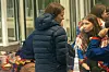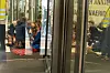 hvert til demonstrantene i departementet. Personalet bruker en annen inngang for å komme seg på jobben i dag.