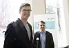 Kristian Akerbo fra Voi og Lars-Christian Grødem-Olsen fra Tier Mobility (bak) møtte fredag samferdselsminister Knut Arild Hareide (KrF) sammen med seks andre elsparkesykkelaktører.