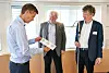 Samferdselsminister Knut Arild Hareide (t.v) møtte Blindeforbundets Terje Andre Olsen og Sverre Fuglerud. Det har skjedd mange ulykker, og elsparkesyklene har skapt farlige situasjoner for andre trafikanter. Spesielt for blinde og svaksynte.Foto: Gorm Kallestad / NTB