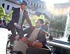 Samferdselsminister Ketil Solvik-Olsen transporterer Venstre-politiker Abid Raja i transportsykkelen. Illustrasjonsfoto: Norsk Elbilforening