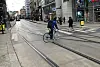 Storgata er ikke tilrettelagt for syklende, men mange sykler der likevel. Det er trangt når man må "konkurrere" med trikker, varebiler og gående.Foto: Torkil Kristiansen.