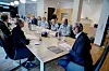 Statsminister Jonas Gahr Støre, justisminister Emilie Enger Mehl og finansminister Trygve Slagsvold Vedum i møte med Politidirektør Benedicte Bjørnland, sjef for Kripos Kristin Ottesen Kvigne, Åsne Hugdal Kalberg i Kripossjef for Økokrim Pål Lønseth, visepolitimester i Oslo Geir Solem, og Lene Holmskov Storli i politiet i møte på statsministerens kontor om kriminalitetsbildet.Foto: Stian Lysberg Solum / NTB