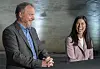 Byrådsleder Raymond Johansen (Ap) og miljøbyråd Lan Marie Berg (MDG) i godt humør under presentasjon av nye trikker. I dag kunne de to slå fast at det heller ikke er mistillitsflertall mot Berg.Foto: Ole Berg-Rusten / NTB