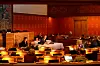 Høringen er første gang bystyresalen i Rådhuset ble brukt siden koronastengingen og innføring av digitale møter i mars.Foto: Morten Lauveng
