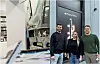 Administrerende direktør Espen Berger i Eplehuset (t.v.), HR-sjef Nadja Sørensen i Eplehuset og butikksjef Anders Skjøstad i Eplehuset Storgata utenfor Eplehuset i Storgata 17. Etter trikkekrasjen for over et par uker siden, er det nå igjen aktiv butikkdrift i lokalene.Foto: Terje Pedersen (NTB) / Eplehuset