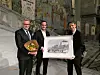 Knut Jensen (til v.) tok imot prisen for årets lærebedrift. Tarjei Helland (til h.), byrådssekretær i byrådsavdelinga for oppvekst og kunnskap, delte ut prisen. Foto: Ole Kristian Grønneng / Utdanningsetaten