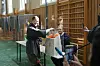 MDGs partileder Une Bastholm på Foss videregående skole i Oslo hvor hun mandag formiddag avla sin stemme.