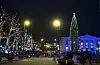 Oslos paradegate Karl Johan med lys i trærne og et opplyst juletre på Universitetsplassen, med Slottet i bakgrunnen.Illustrasjonsfoto: Erik Johansen / NTB
