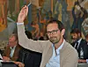 Hallstein Bjercke (V) avgir stemme under bystyrets møte onsdag. Både Venstre og KrF reagerer på at Ap/SV/MDG-byrådet setter punktum for private sykehjem.Foto: Arnsten Linstad