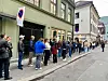 Køen vokser seg fort lang i Mariboes gate når dørene åpnes for konserter med populære artister i aksjon på Rockefeller.Foto: Ingri Valen Egeland