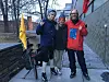 Fra venstre: Anders Stai Fougner (26), Magne Nyberg (18) og Eskil Roll-Hansen (23) lot seg frivillig arrestere som en del av aksjonen for å sette fokus på global oppvarming. Her er de akkurat ute fra arresten. Foto: Extinction Rebellion