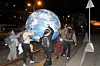 Her bærer Extinction Rebellion inn kloden sin på Oslo Havns anlegg på Sjursøya. I bakgrunnen sees toget med flybensin.Foto: Extinction Rebellion