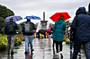 Turister utstyrt med paraply i Vigelandsparken onsdag.