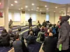 Neste stopp er Oslo Buddhistsenter. Vi er for mange til å kunne gå inn, og appellen blir derfor holdt på Youngstorget. Her forklarer de at buddhisme er bygget rundt prinsippet om kjærlig vennlighet. Om å bry seg om alle mennesker.