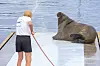 De har også dokumentert at folk bader med hvalrossen, og at de oppsøker den ved vannkanten, sammen med barna sine, for å ta bilder.