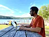 Maxym Kuznyetsov holder seg i nærheten av Bogstadvannet når temperaturen kryper opp på gradestokken.Foto: Privat
