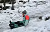 Lek er en alvorlig sak. Mika gjør det på alvor og har sin helt egen akebakke. Foto: Katja Johanne Pihl