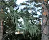 Og der, på en grein høyt oppe, hang det julepynt. Langt bak i hukommelsen dro noen hardt i en arkivskuff, og navnet huldrestry dukket opp. Men… det kunne vel ikke være… den er jo rødlista! Vi tok dette bildet, og da vi kom hjem delte vi det på Østmarkagruppa på facebook. Det tok ikke lang tid før hjelpekorpset meldte sin ankomst.