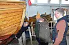 En gammel robåt av typen «Lyngørputt» måles opp, og blir utgangspunkt for båtene som skal bygges på kurs i havneskuret i vinter.Foto: Tuva Løkse