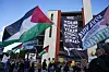 Onsdag ettermiddag samlet personer tilknyttet Aksjonsgruppa for Palestina seg til en markering på Ullevaal Stadion. Om lag seksti personer skal ha møtt opp.