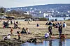 Mange koser seg ute i den varme sola på Huk i påsken.Foto: Ole Berg-Rusten / NTB