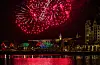 Kommunalt fyrverkeri fra Rådhuset i 2020. Her sett fra bassenget utenfor Salt på Langkaia.