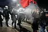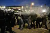 Tidligere på kvelden brukte politiet tåregass for å få kontroll på demonstrantene. Politifolkene var iført hjelm og gassmasker.