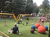 I den store parken ved siden av står et kjempestort, 25 meter langt beist av et klatrestativ. Stativet er gult, høyt og fantasifullt formet og har ikke sin make, i hvert fall ikke i Oslo. Lekeapparatet inviterer til ulike form for lek: Klatre opp til toppen, ras opp og skli ned, kongen på haugen, klatre opp et av de mange tauene med knute eller sitt på toppen og heng med en venn.
