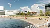 Sandstranda blir grunn og egner seg for de små, men det blir også en voksendel med dypere vann.Illustrasjon: Rift / HAV Eiendom