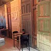 Ny anvendelse av gamle ytterdører til innervegger. Her fra Paleet.