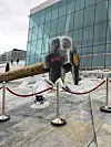 På torget foran Operahuset har Netflix plassert en flere meter høy og lang hammer. Det prisvinnende Snøhetta-bygget er for anledningen blitt reklamemonter for strømmetjenestens reklamekampanje for den nye TV-serien «Ragnarok».