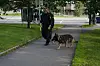 Politi med hund søker i området nær der en mann ble knivstukket under en fotballkamp på Tøyen lørdag ettermiddag. Foto: Fredrik Hagen / NTB scanpix