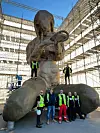 Allerede torsdag i forrige uke startet arbeidet med stillaset rundt skulpturen på Sukkerbiten. Og mandag ble «Moren» delvis synlig for publikum mandag 30. mai.