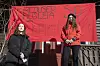 Vi krever at Studentsamskipnaden senker husleia, slik at studenter kan leve på studiestøtta si og slippe å være bekymret for essensielle utgifter, som bolig, medisiner og mat, sier Nina Arnesen. Til venstre Merita Fjetland.Foto: Olav Helland