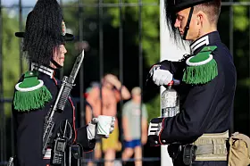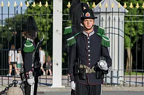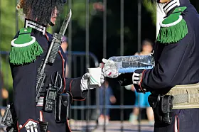 Gardistene forblir ulastelig antrukket også i varmen.Foto: Jan Langhaug / NTB